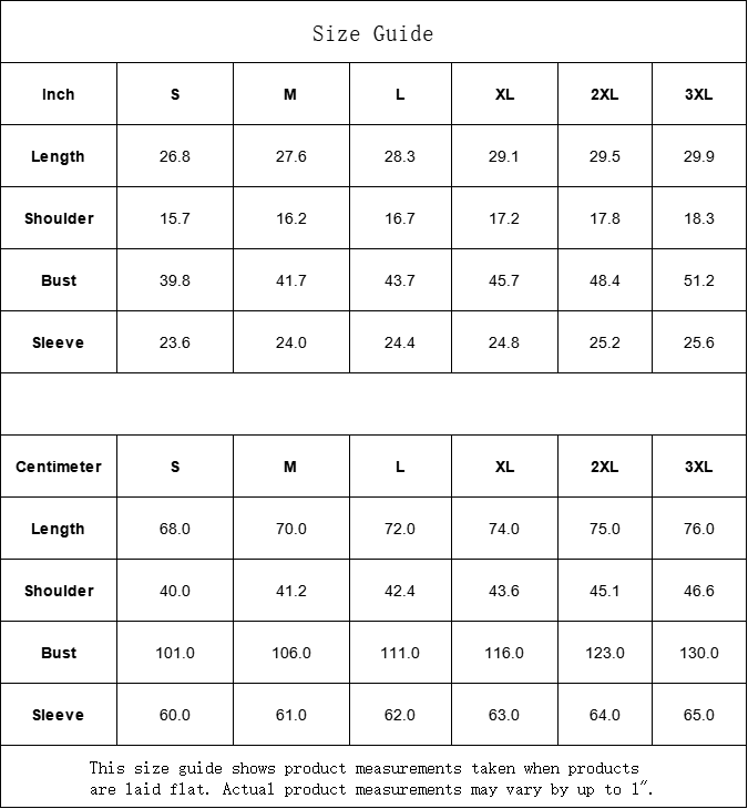 Centimeter | S | M | L | XL | 2XL | 3XL |